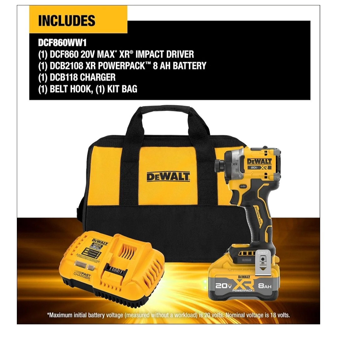DEWALT DCF860 : Atornillador de impacto de mayor torque de Dewalt Realice trabajos difíciles con hasta un 66 más de torque; Rendimiento rápido y eficiente: trabaje de manera eficiente con una conducción hasta un 63 por ciento más rápida; Control de nivel profesional: obtenga un rendimiento preciso con un gatillo de velocidad variable y selección de modo de 3 velocidades Las velocidades 1 y 2 están optimizadas para que coincidan con las velocidades de instalación de tornillos autorroscantes y autorroscantes de uso común ,LED incorporados DEWALT DCF860 ,9 LED incorporados y la configuración de luz de trabajo de 20 minutos brindan iluminación adicional; Mandril hexagonal de conexión rápida de 1/4 .trabaje cómodamente con mandril hexagonal de conexión rápida de 1/4 pulg. compatible; Perforación hasta un 21 por ciento más rápida en comparación con Milwaukee; Conducción hasta un 20 por ciento más rápida en comparación con Milwaukee.